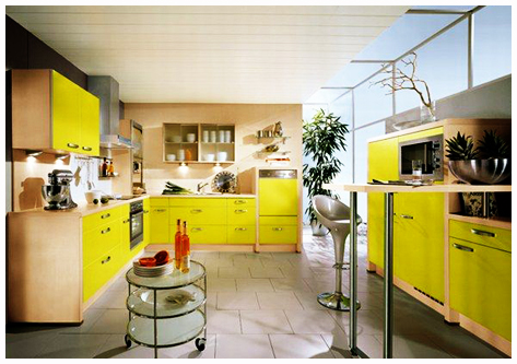 Vibrant colors reign in homeowner nancy traversy s kitchen where bold green perimeter cabinets and a sunny yellow island are united by the kitchen s multicolor tile backsplash. These include medium blue soft gray light blue. For a fantastic splash of kitchen color design blogger kristi over at addicted 2 decorating chose a tasty palatable teal for cabinets and white for the rest of the area.
