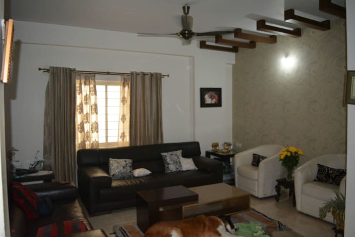 A single accent wall can add a great deal of visual interest to a room. As a rule of thumb choose two to three base colors to accent your couch and unify the space. A living room featuring black leather seats and a stylish table cabinet at the back.